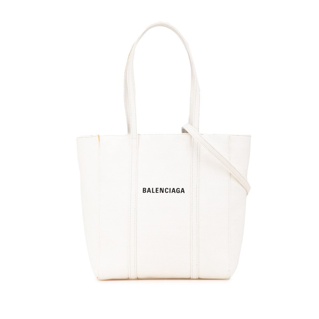 The Everyday XS features a canvas body, flat straps, a detachable flat strap, an open top, and interior zip and slip pockets.