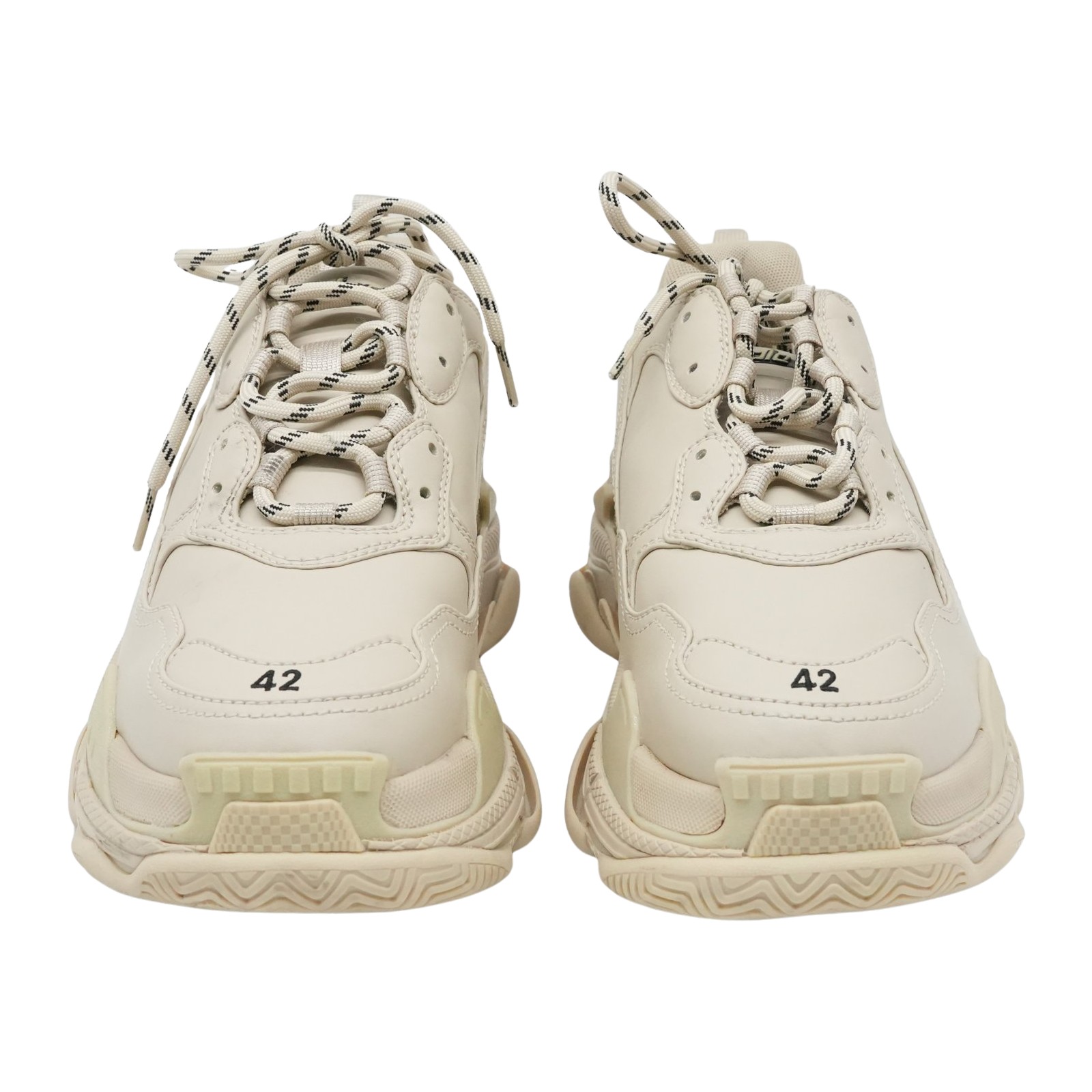 Balenciaga Cream Faux Leather Triple S Sneakers Size 42 Beig