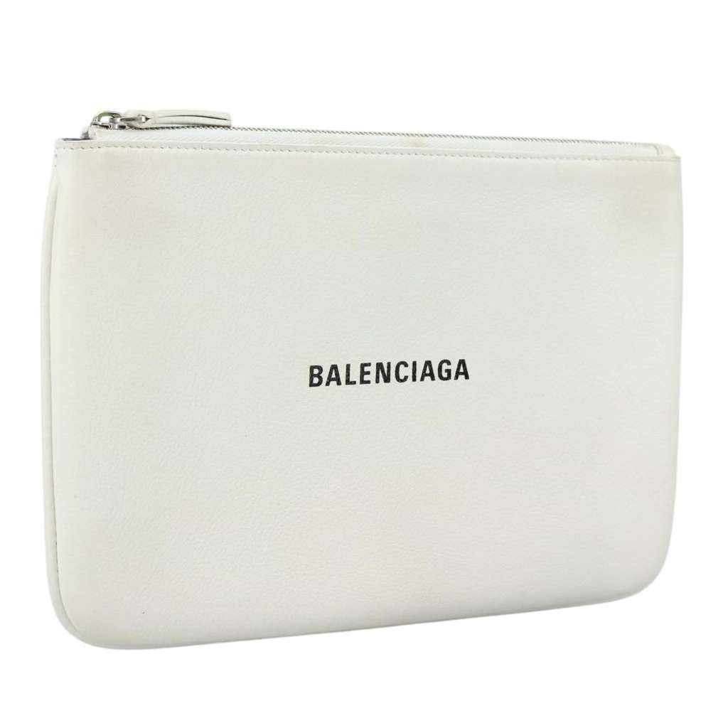 Balenciaga Everyday Logo Pouch White Small Leather