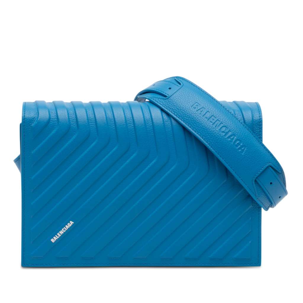 This crossbody features a quilted leather body, an adjustable flat leather strap, a front flap with magnetic closure, and interior slip pockets.
