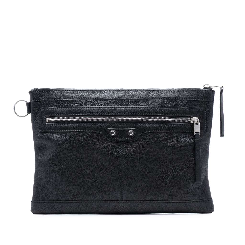 Balenciaga Lambskin Motocross Classic Clip M Clutch Black La