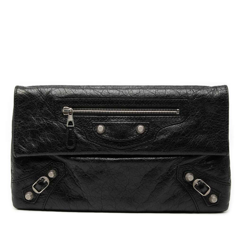 Balenciaga Lambskin Motocross Giant 12 Envelope Clutch Black