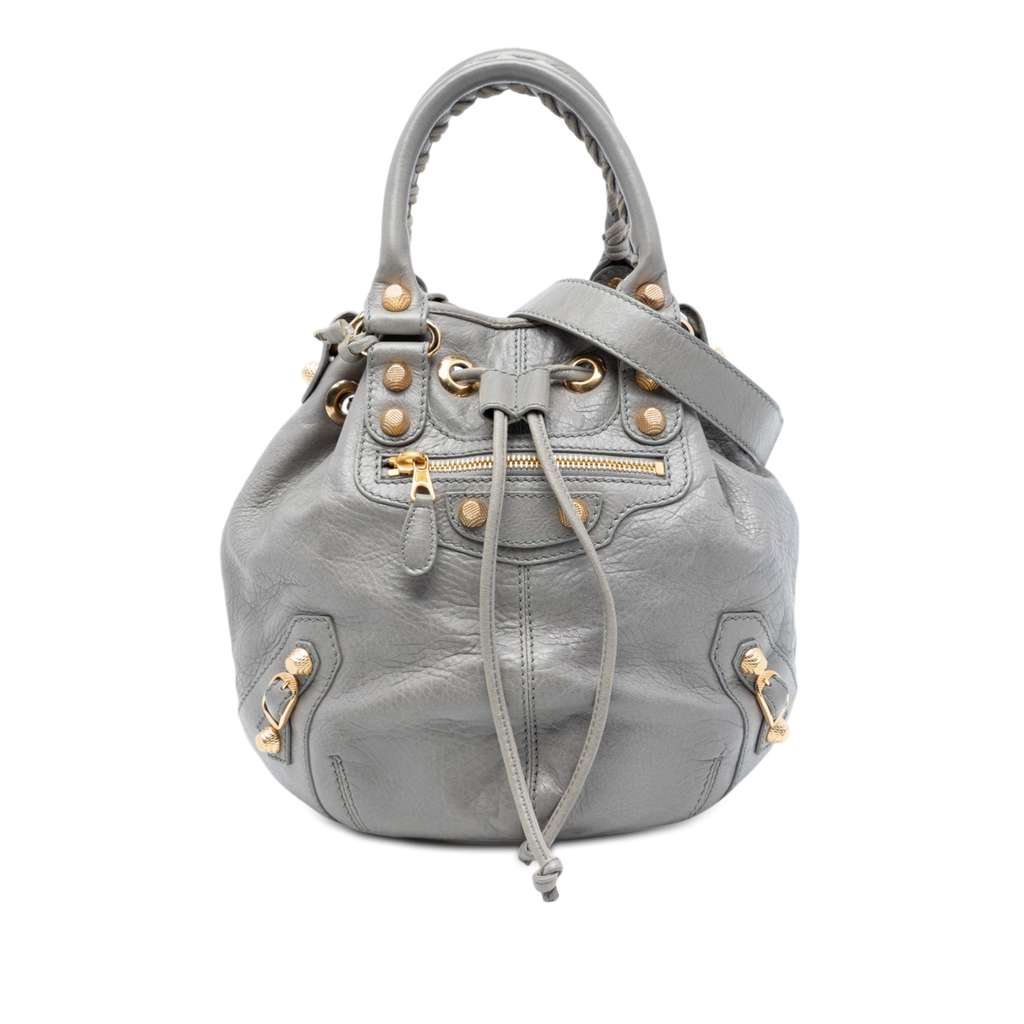 Balenciaga Lambskin Motocross Giant 21 Pompon Bucket Bag Gre