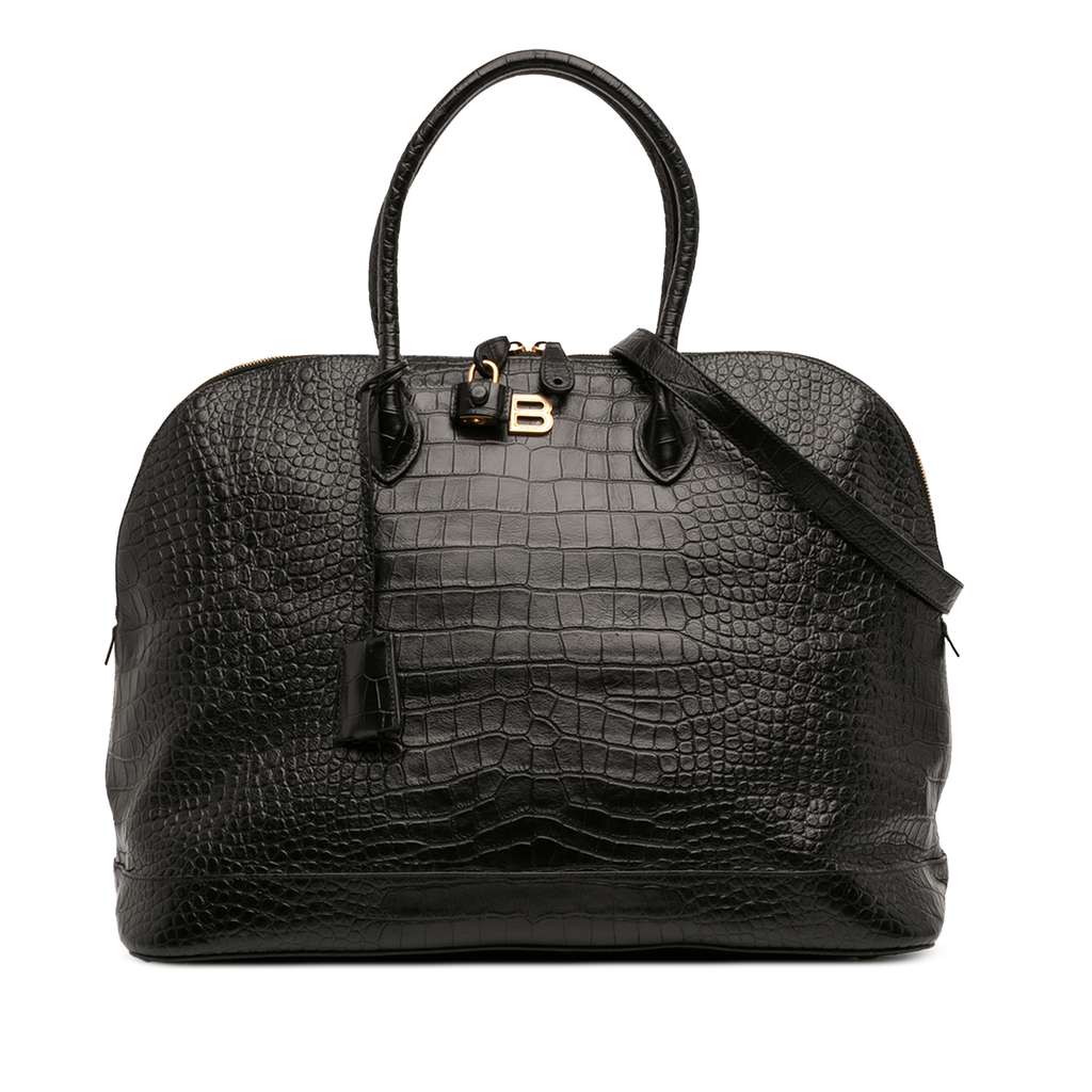 Balenciaga Large Croc Embossed Calfskin Ville Top Handle Bag