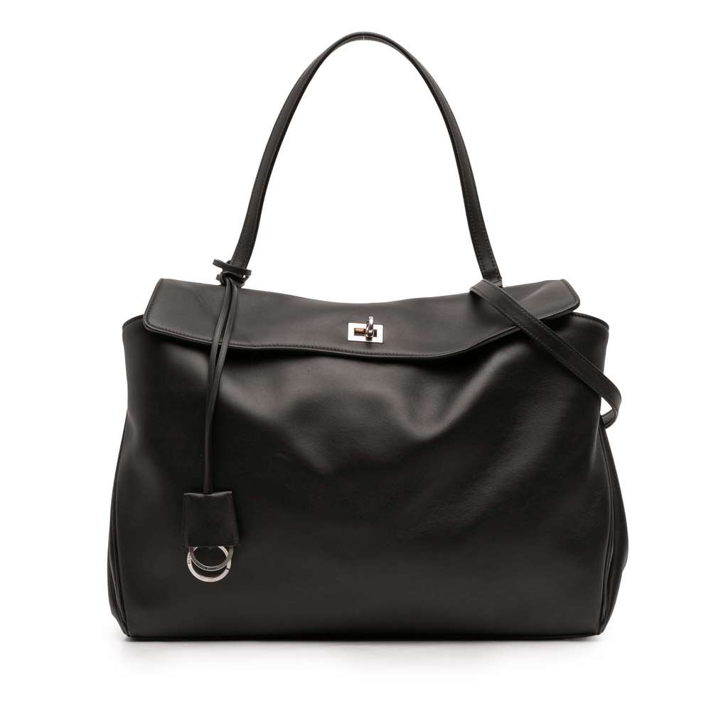 The Rodeo features a leather body, a flat leather top handle, a clochette, a detachable flat leather strap, a top flap with turn lock closure,and an interior zip and slip pockets.