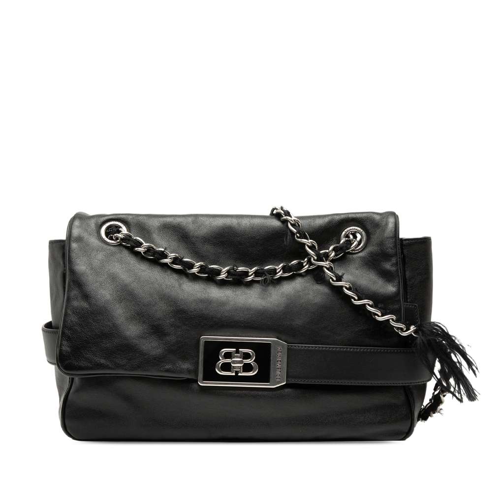 Balenciaga Medium Leather Modu Shoulder Bag Black Large Leat