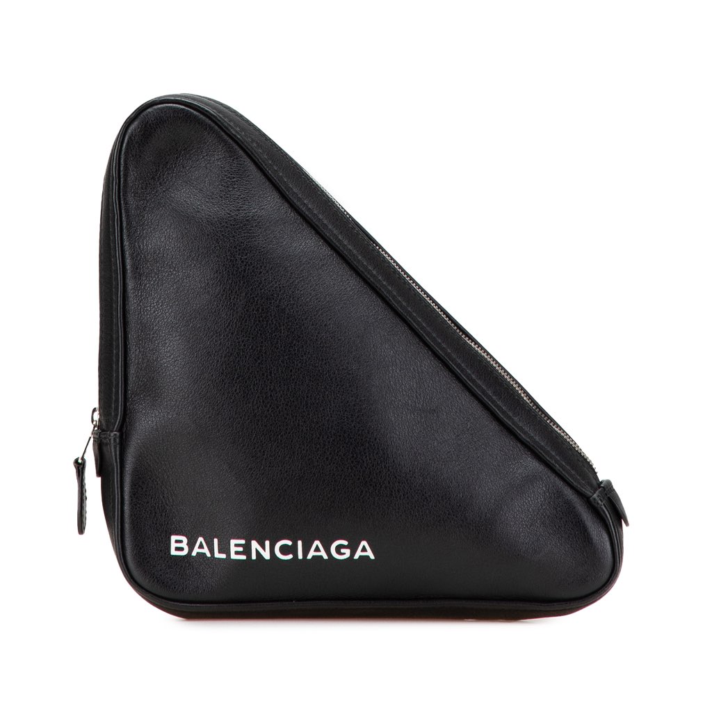 The Triangle clutch bag features a leather body, a zip-around closure, and interior slip pockets.
