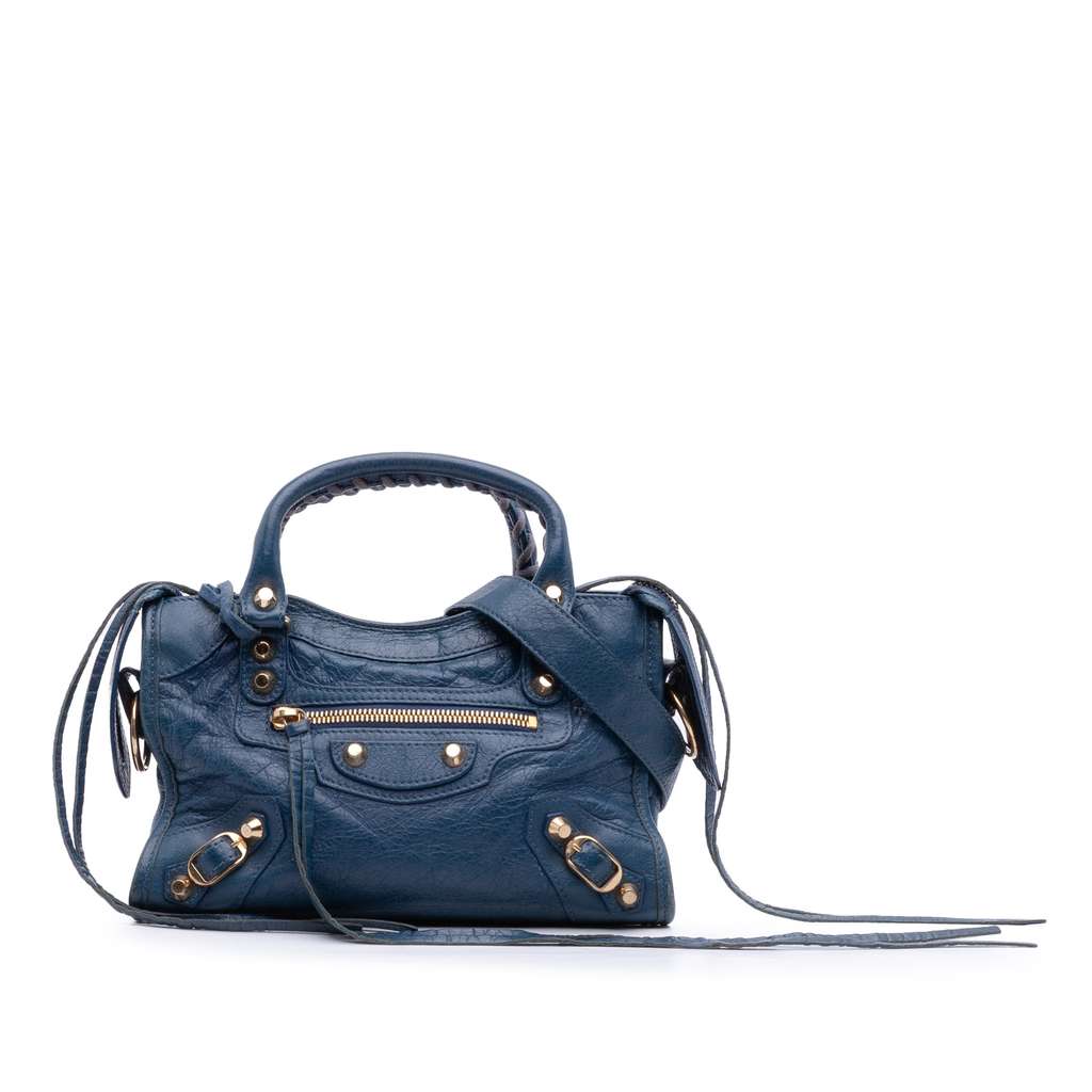 Balenciaga Mini Lambskin Motocross Classic City Satchel Blue