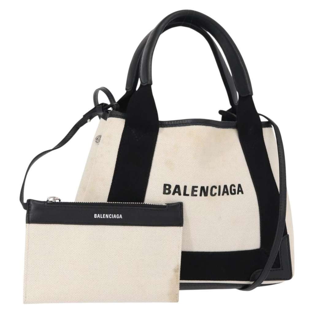 Balenciaga Navy Cabas White Small Canvas | Pre-Loved Luxury