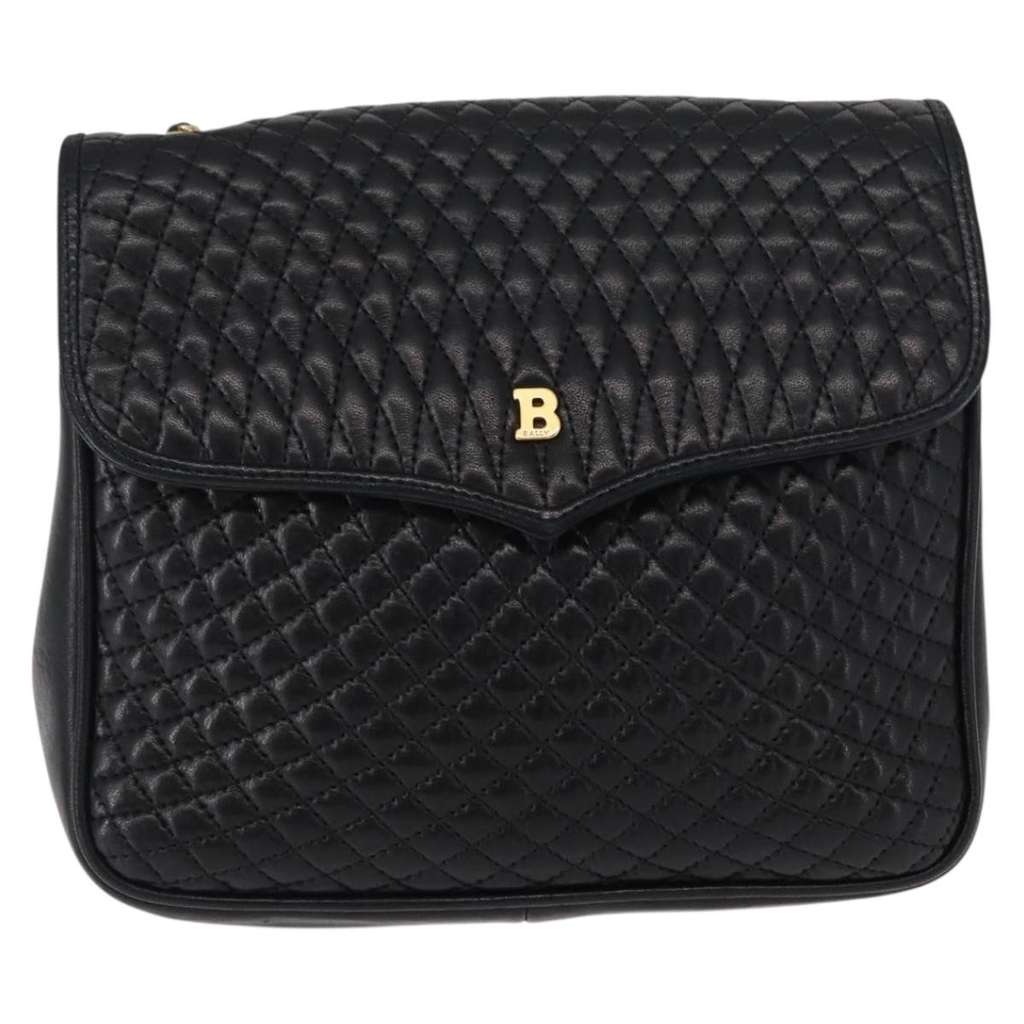 Bally Vintage Chain Shoulder Bag Black Mini Leather