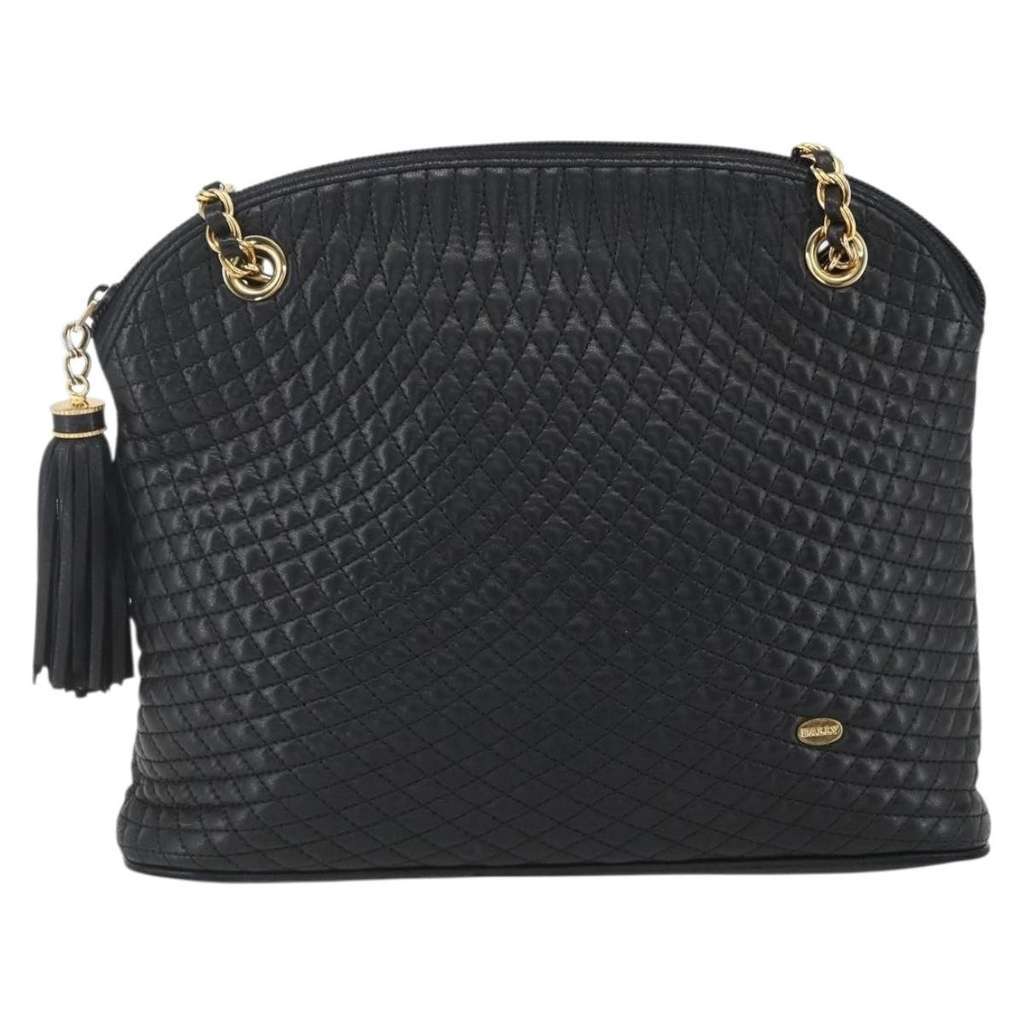 Bally Vintage Chain Shoulder Bag Navy Medium Leather