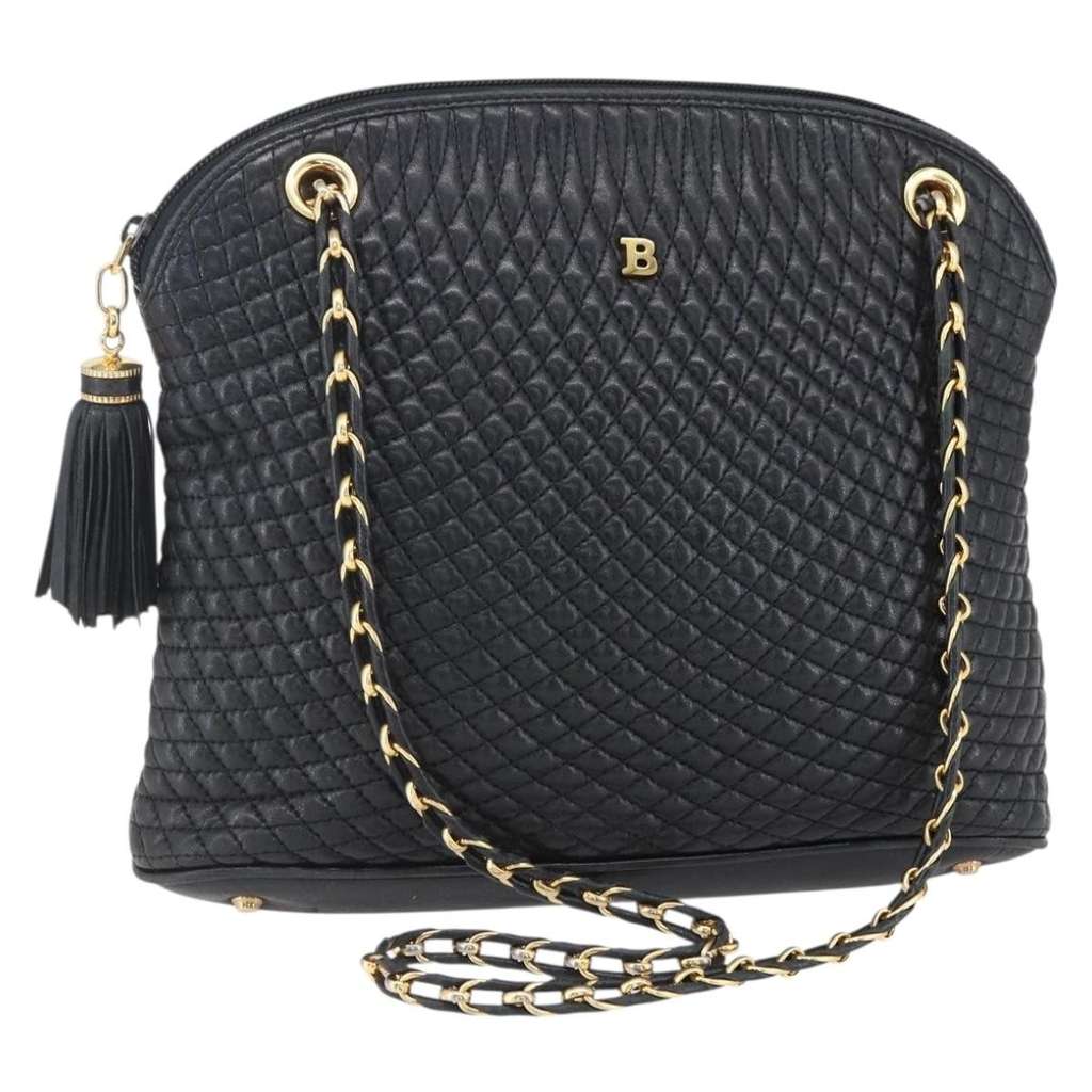 Bally Vintage Chain Shoulder Bag Black Medium Leather