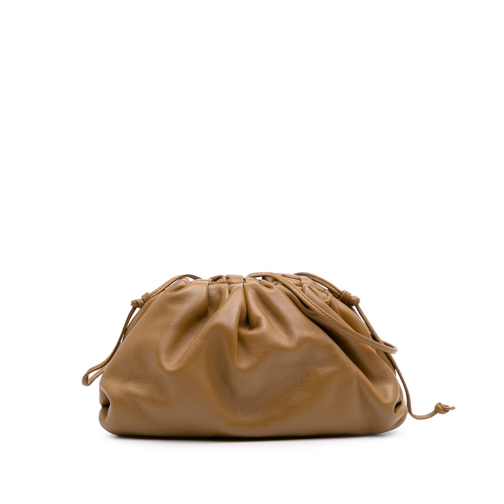 The Pouch features a leather body, flat leather strap, and a magnetic closure.