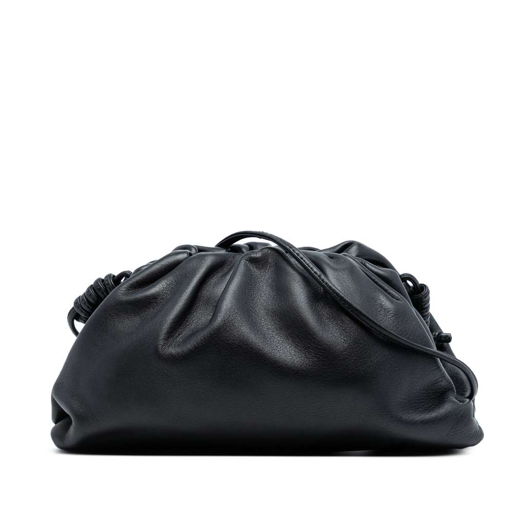 The Pouch features a lambskin leather body, a flat leather strap, and a magnetic closure.