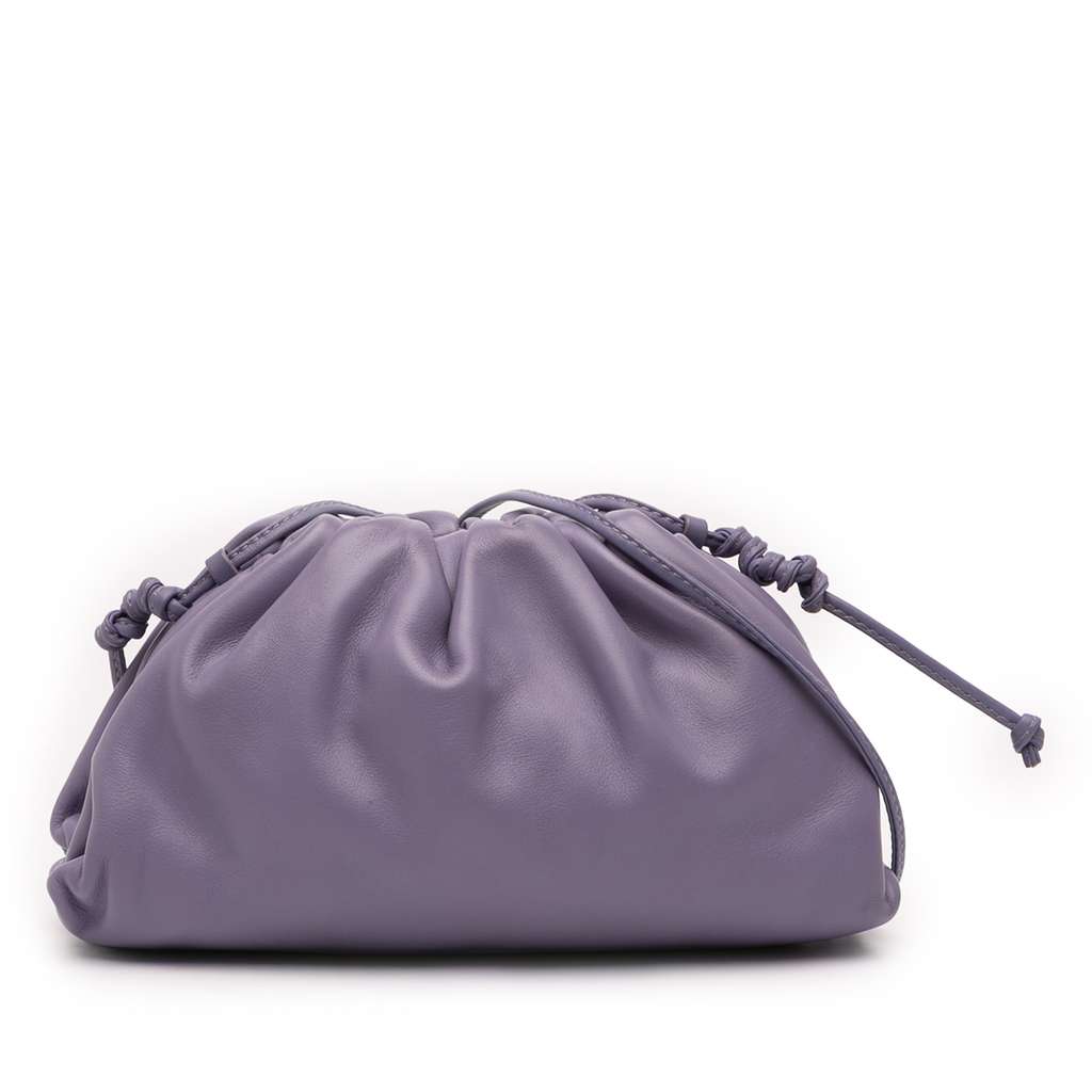 The Pouch features a leather body, a flat leather strap, and a magnetic closure.
