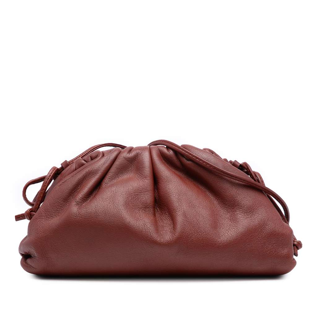 The Pouch features a leather body, a flat leather strap, and a magnetic closure.