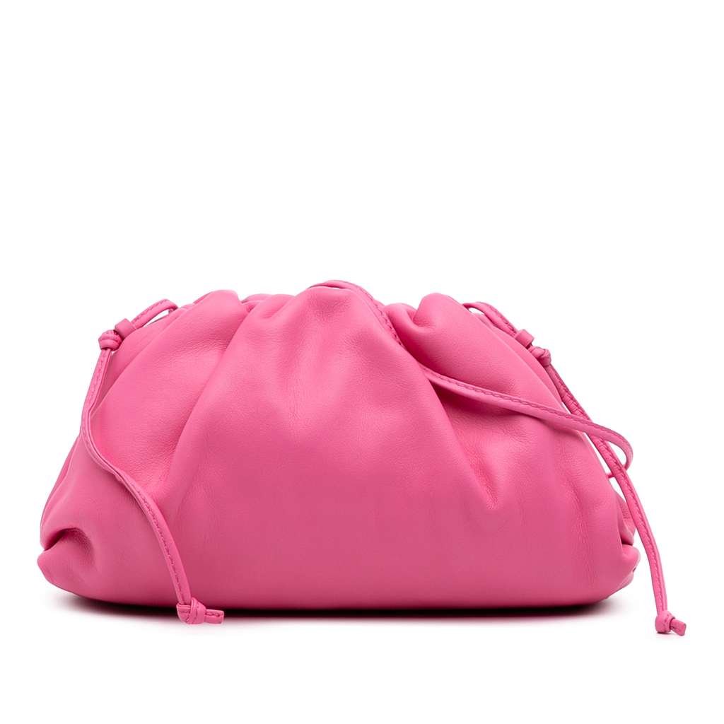 The Pouch features a leather body, a flat leather strap, and a magnetic closure.