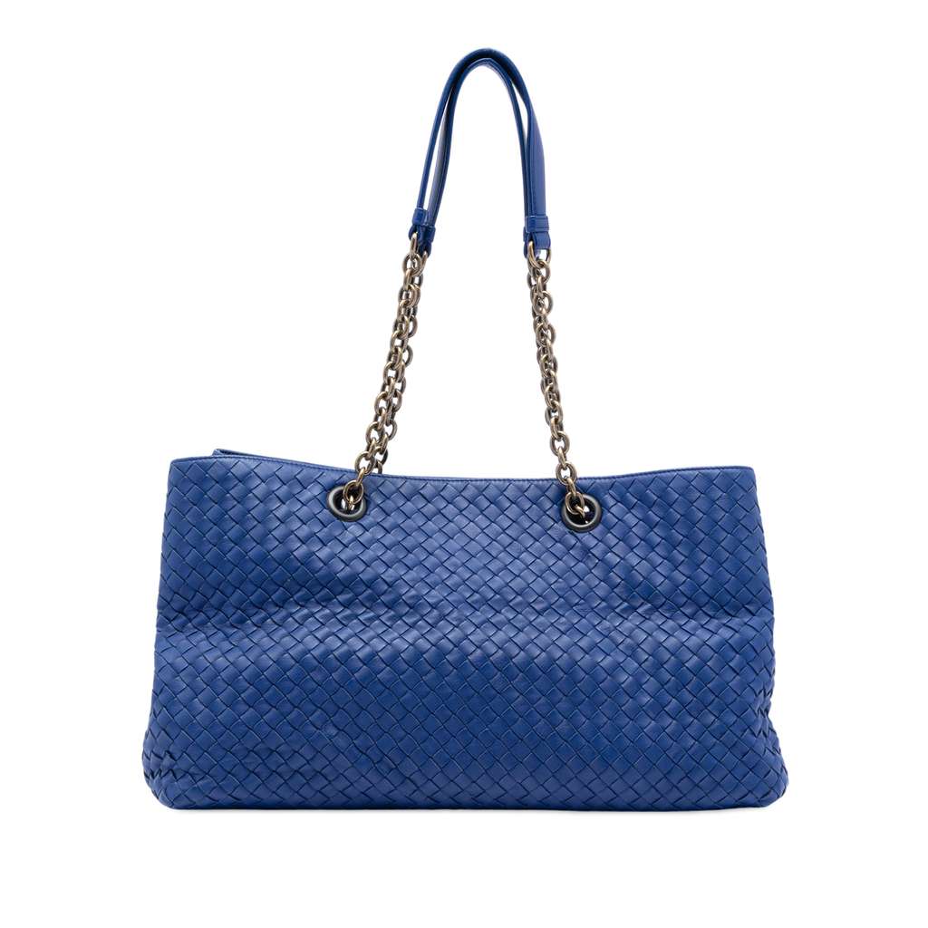 Bottega Veneta Large Nappa Intrecciato Double Chain Tote Blu