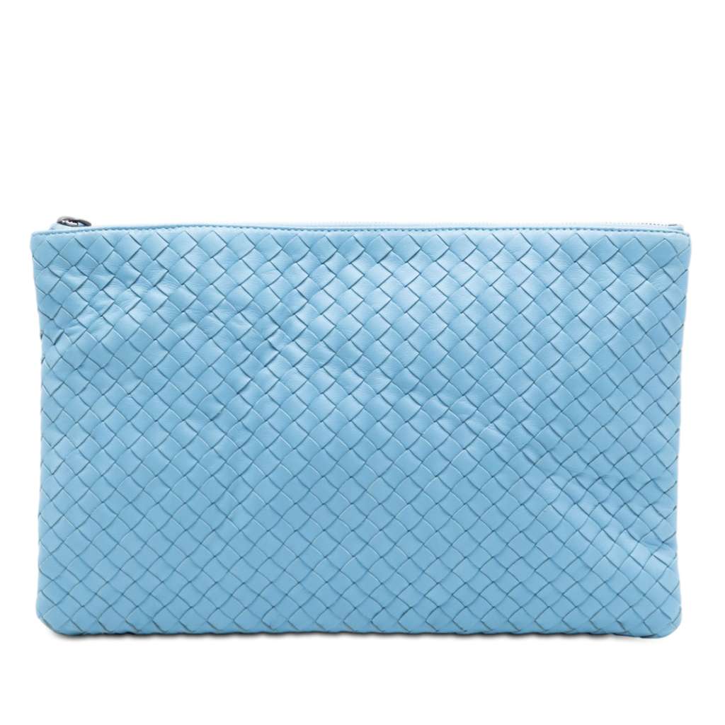 Bottega Veneta Medium Nappa Intrecciato Flat Pouch Blue Larg