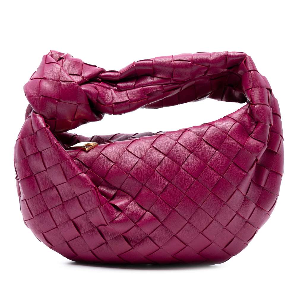 The Mini Jodie features a woven leather body, a knotted woven leather handle, and a top zip closure.