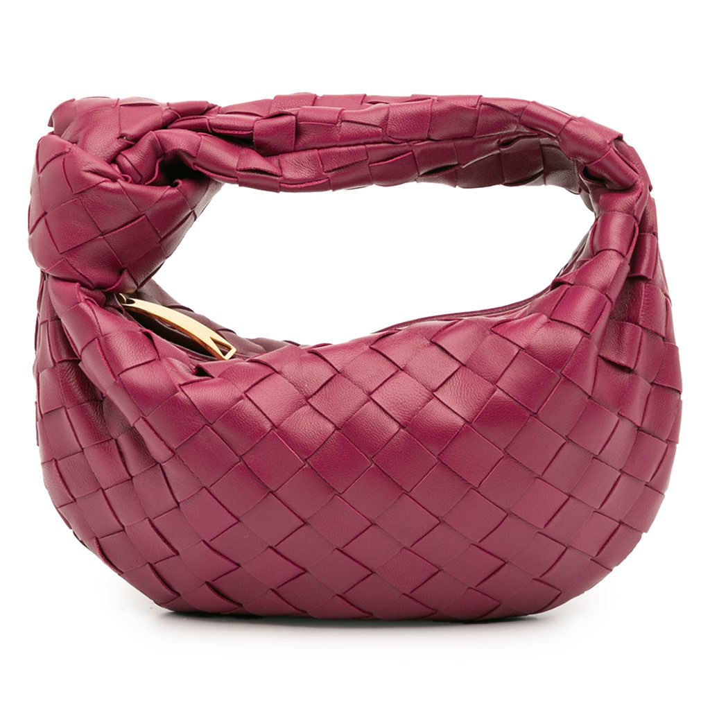 The Mini Jodie features a woven leather body, a knotted woven leather handle, and a top zip closure.