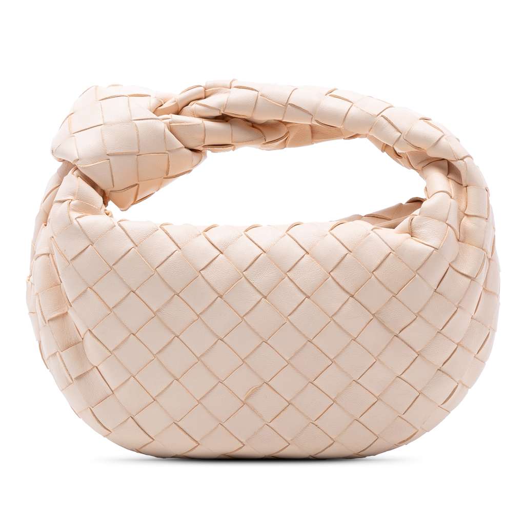 The Intrecciato Jodie features a woven nappa leather body, a woven leather handle, and a top zip closure.