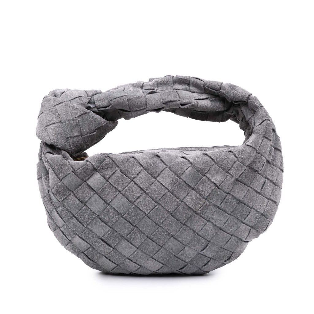 The Mini Intrecciato Jodie features a woven leather body, a knotted woven leather handle, and a top zip closure.