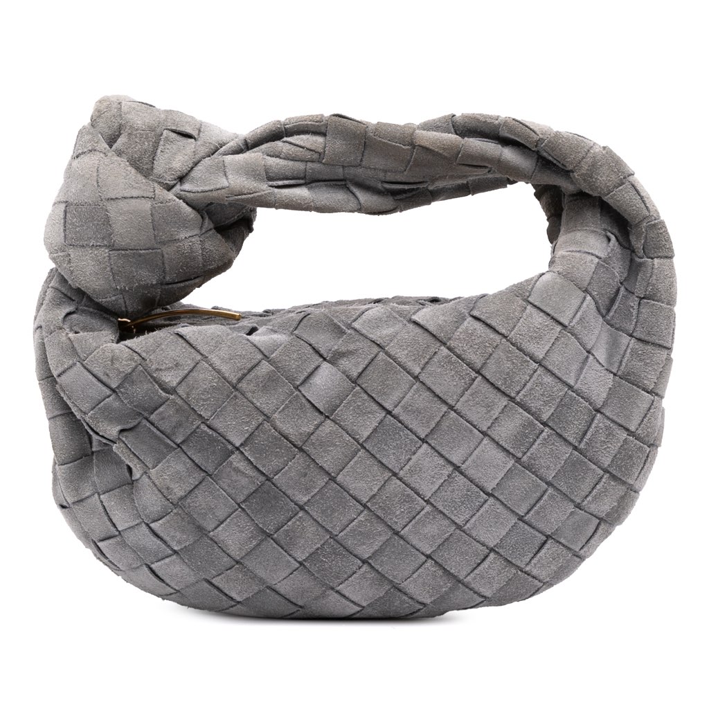 The Mini Intrecciato Jodie features a woven leather body, a knotted woven leather handle, and a top zip closure.