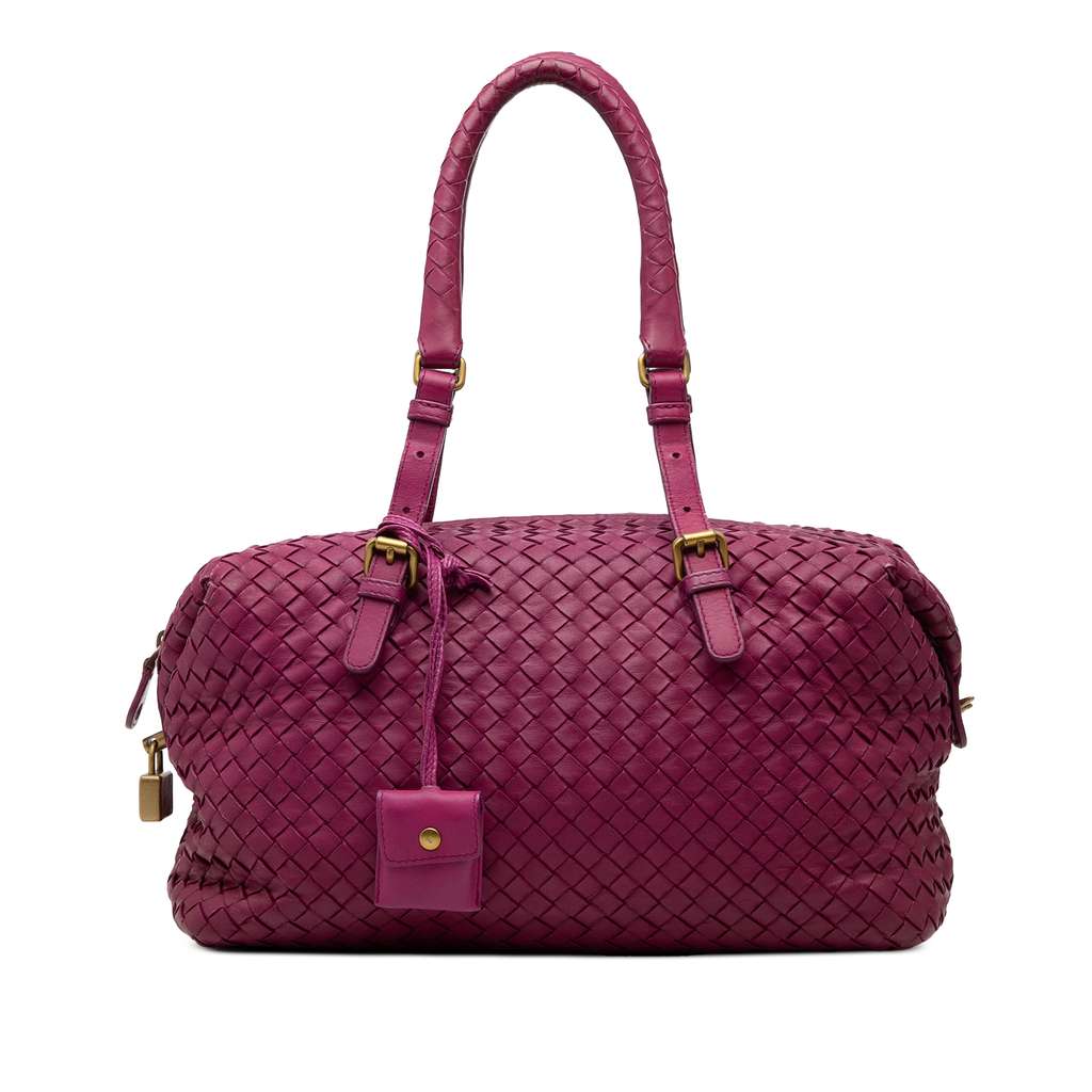 Bottega Veneta Nappa Intrecciato Montaigne Boston Bag Purple