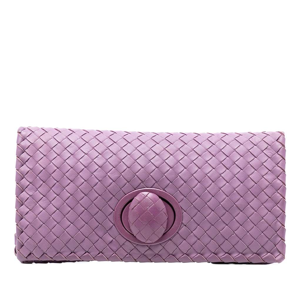 Bottega Veneta Nappa Intrecciato Turn Lock Clutch Purple Med
