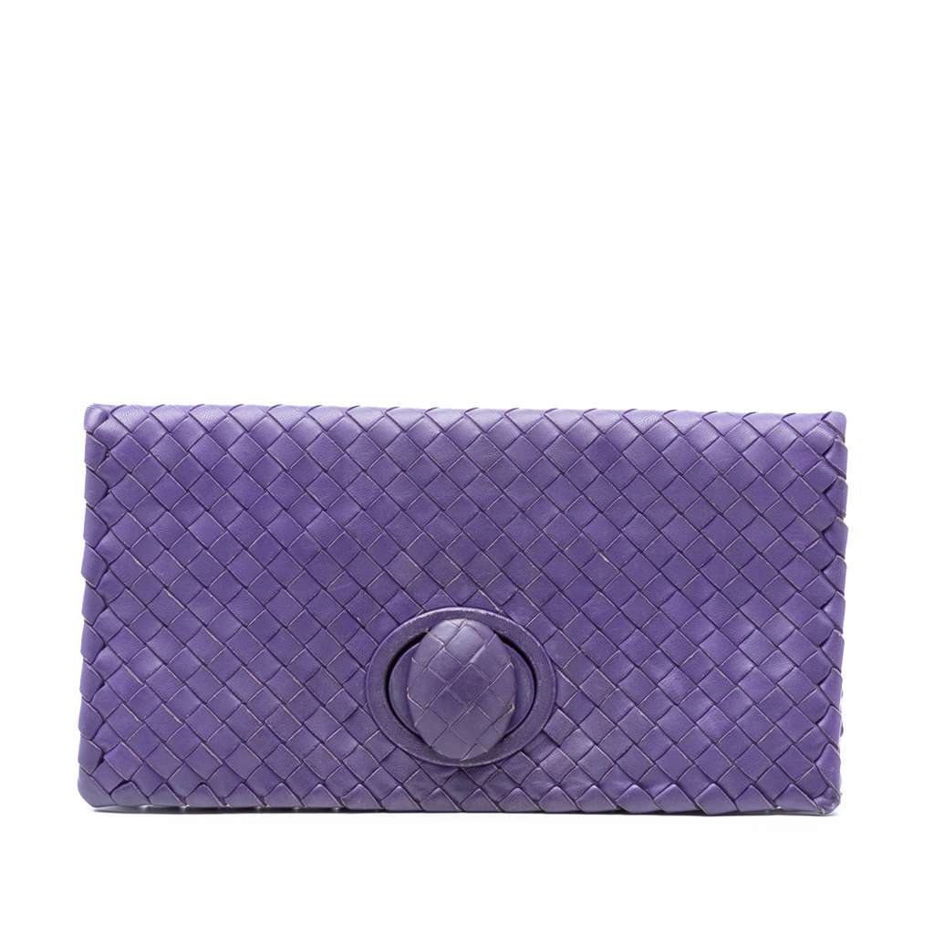 Bottega Veneta Nappa Intrecciato Turn Lock Clutch Purple Med