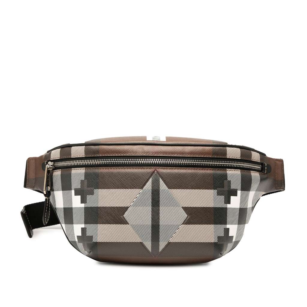Burberry Geometric Check Coated Canvas Bum Bag Brown Medium