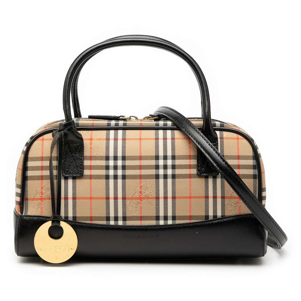 Burberry Haymarket Check Canvas Satchel Beige Small Canvas