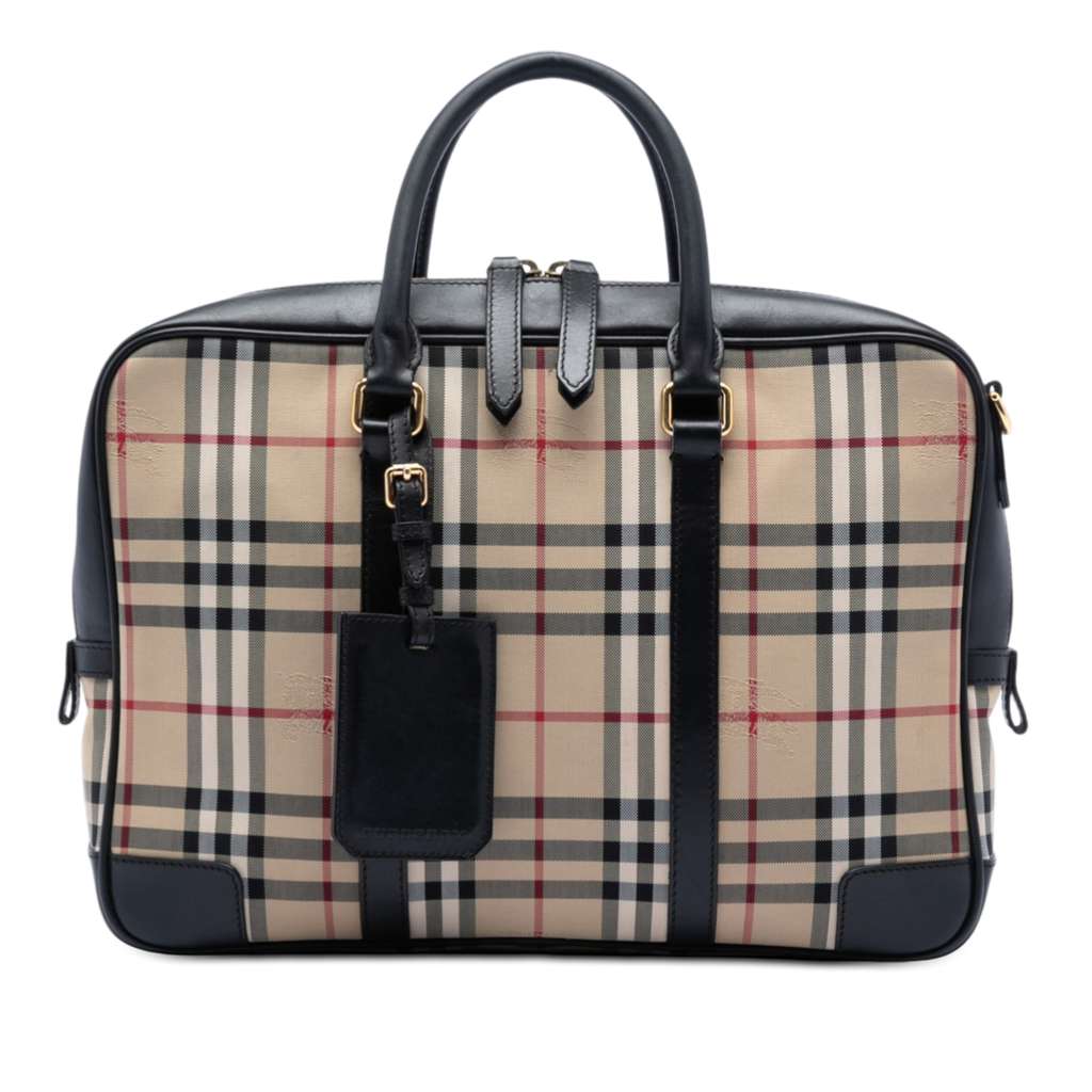 Burberry Haymarket Check Coated Canvas Business Bag Beige X-