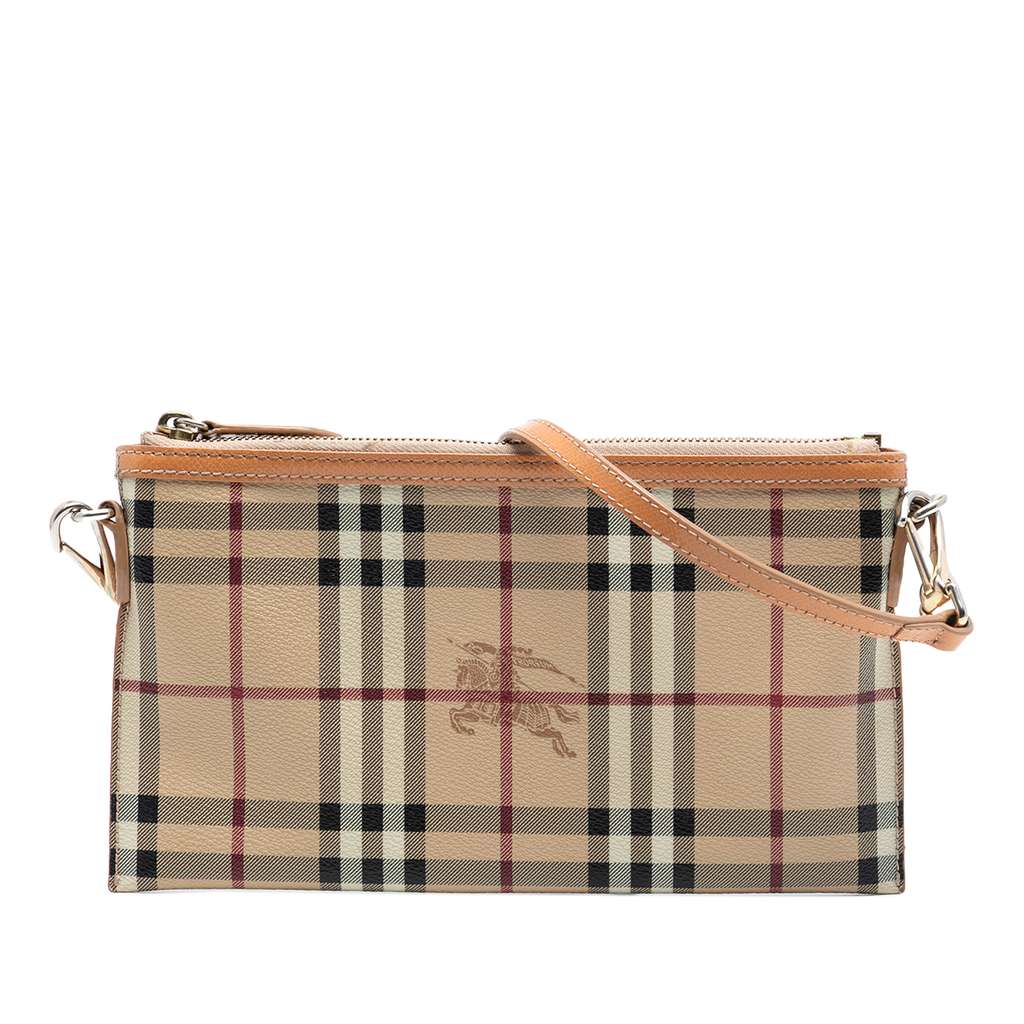 Burberry Haymarket Check Coated Canvas Peyton Crossbody Beig