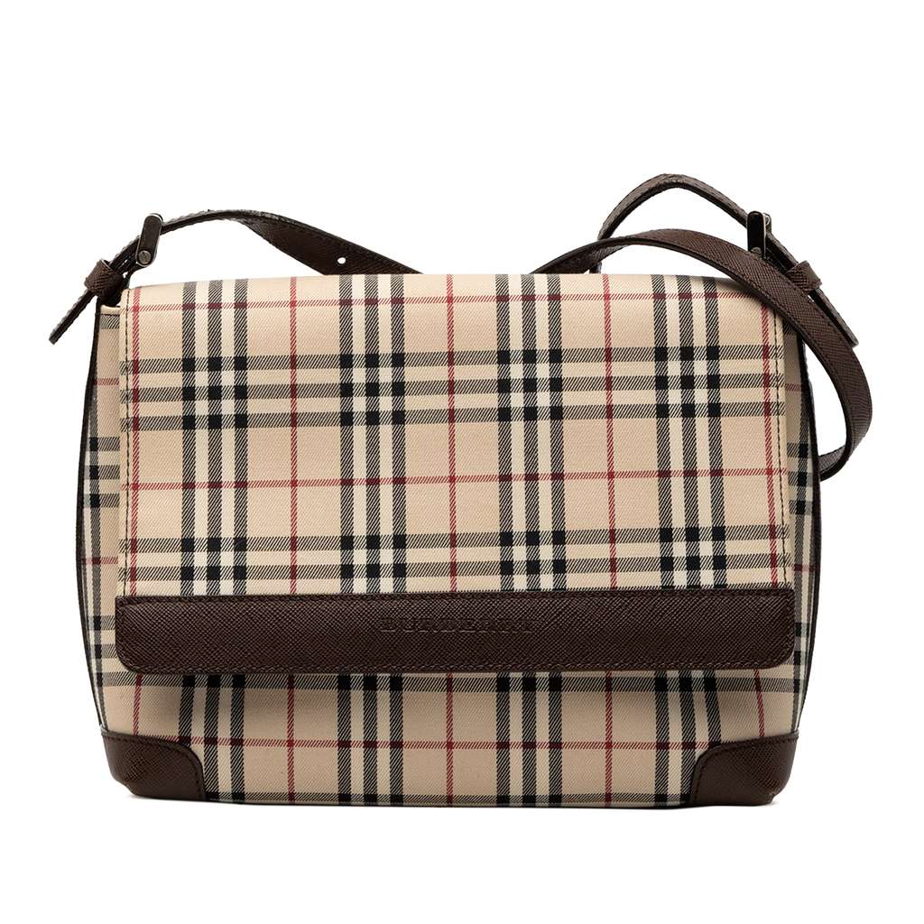 Burberry House Check Canvas Flap Crossbody Brown Small Canva