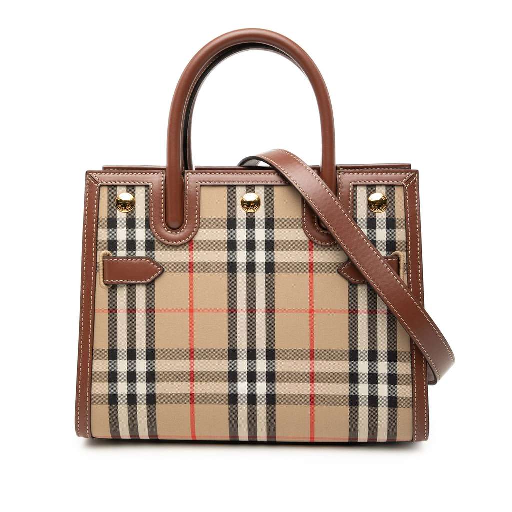 Burberry House Check Canvas Title Satchel Beige Medium Canva