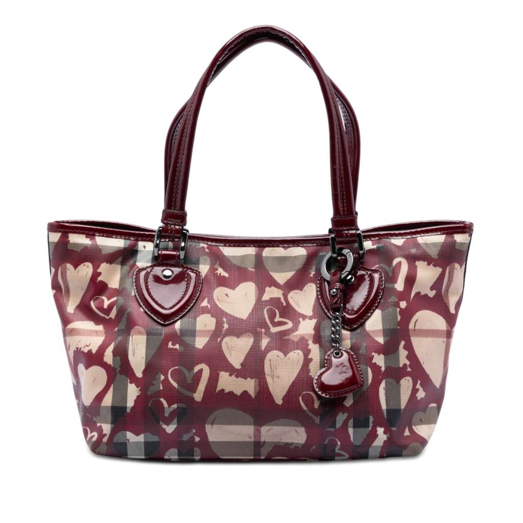 Burberry House Check Coated Canvas Hearts Gracie Tote Red La