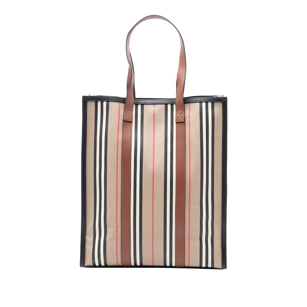 Burberry Icon Stripe Coated Canvas Tote Brown Large Canvas