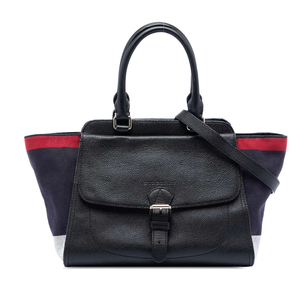 Burberry Leather and Mega Check Canvas Harcourt Satchel Blac