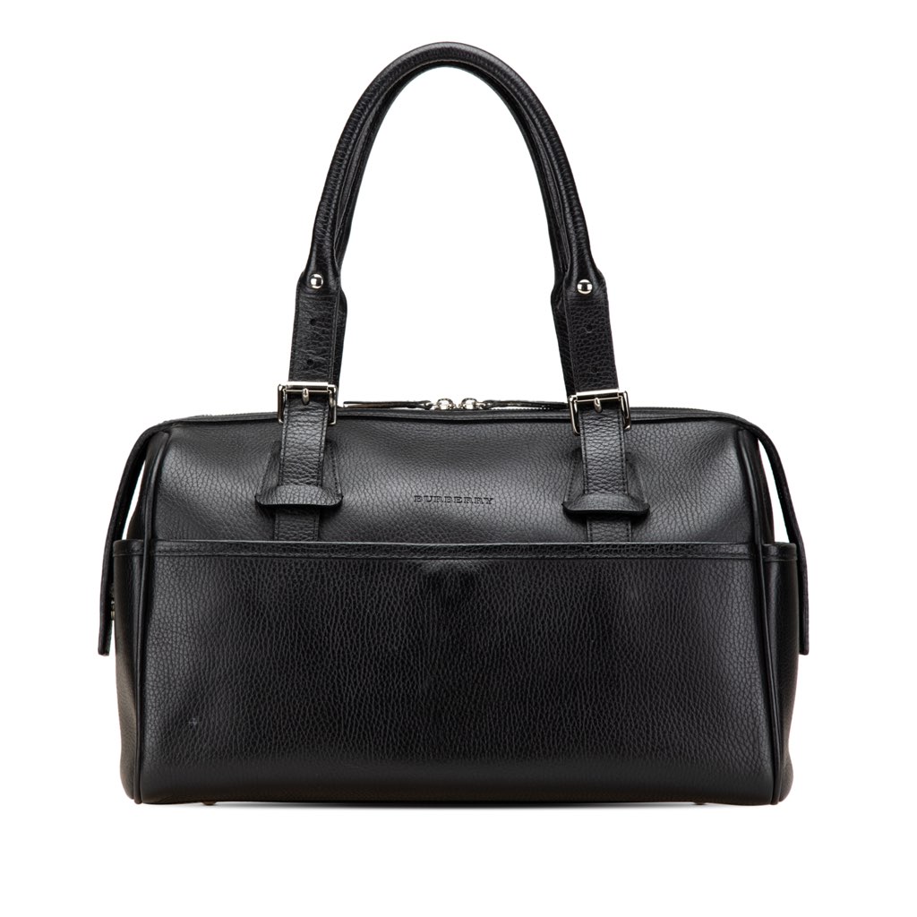This boston bag features a leather body, rolled leather handles, a top zip closure, an exterior front slip pocket, and an interior zip and slip pockets.