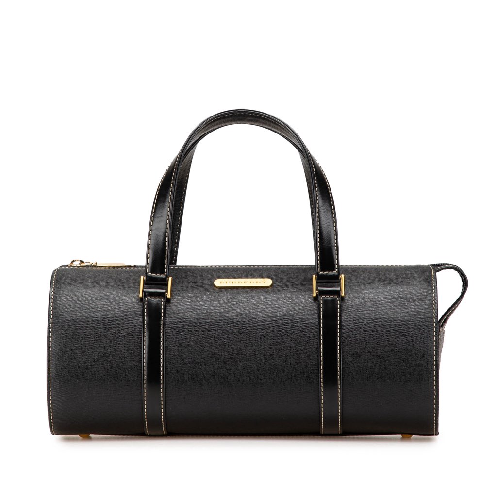 This handbag features a leather body, flat leather handles, a top zip closure, and an interior zip pocket.