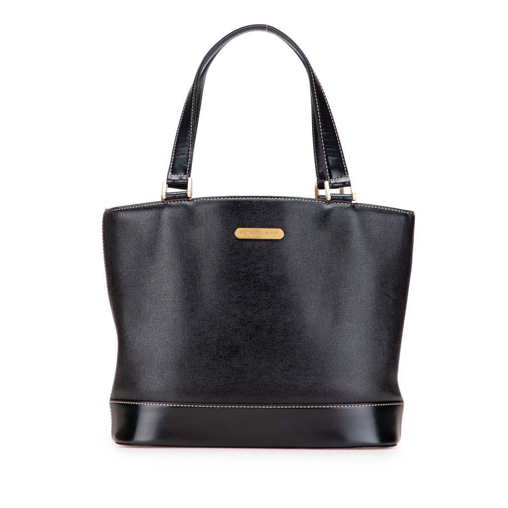 This tote bag features a leather body, flat leather handles, an open top, and interior zip and slip pockets.
