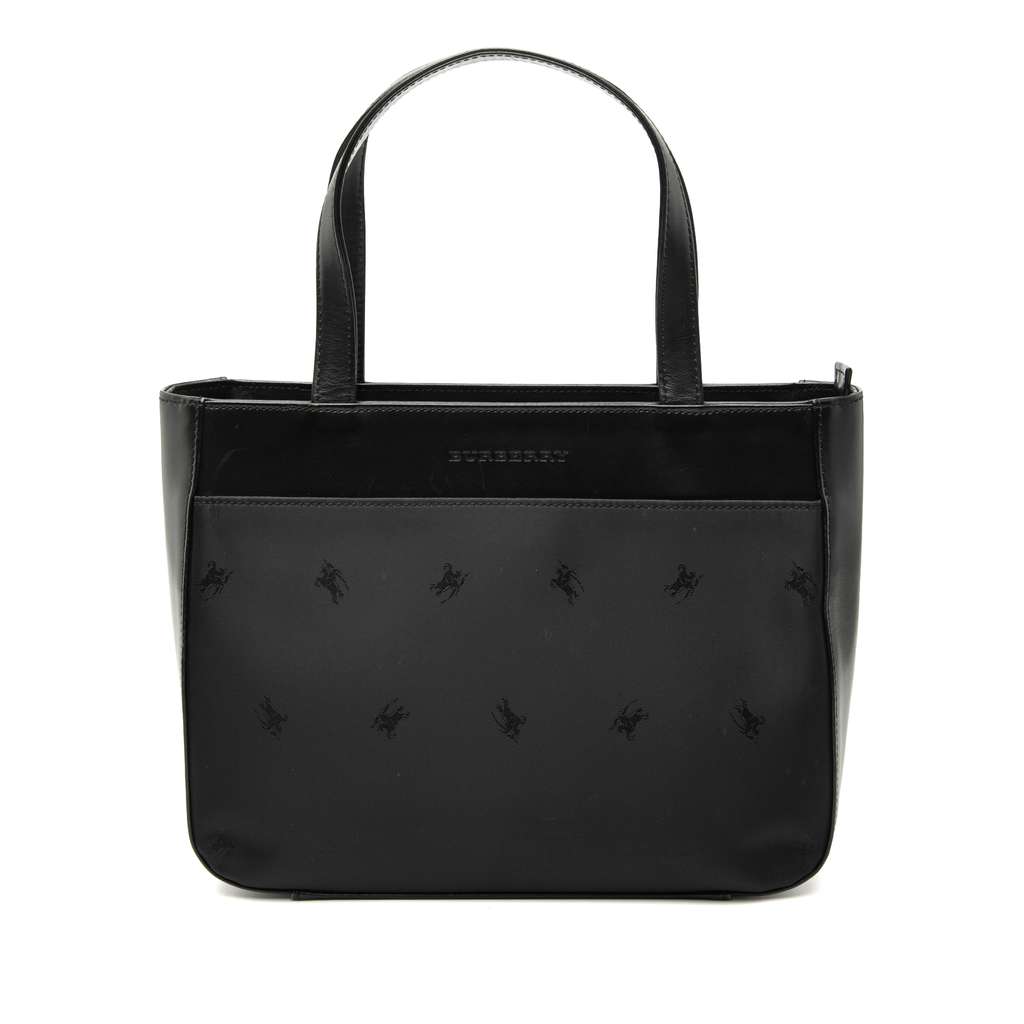 Burberry Leather Trimmed Nylon Handbag Black Medium