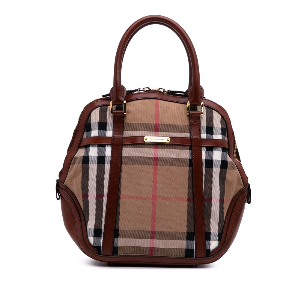 The Bridle Orchard features a canvas body with leather trim, rolled leather handles, a top zip closure, and interior zip and slip pockets.