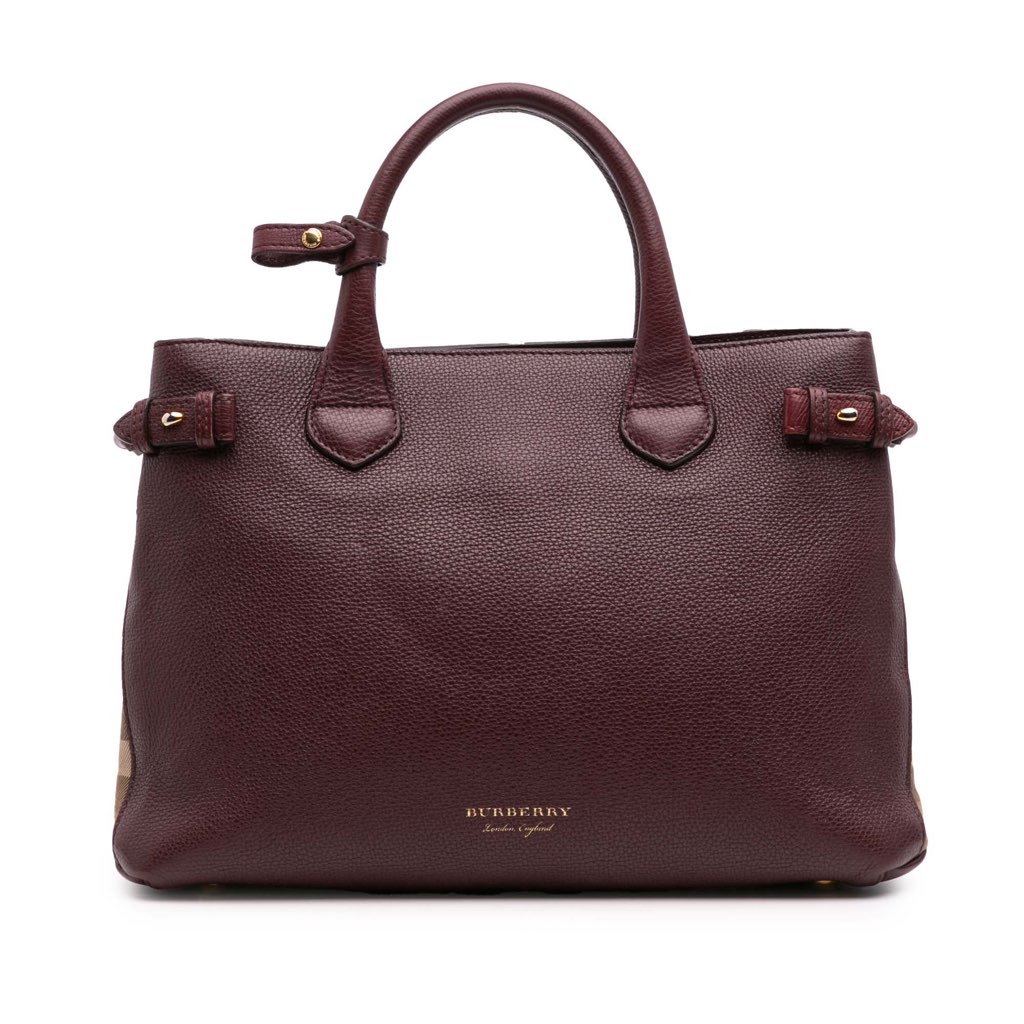 The Banner satchel features a leather body, rolled leather handles, an open top with magnetic snap closure, an interior zip compartment, and interior zip and slip pockets. The front and straps were repainted.