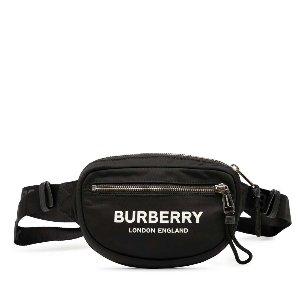 This belt bag features a nylon body, an adjustable flat waist strap, a top zip closure, and an exterior front zip pocket.