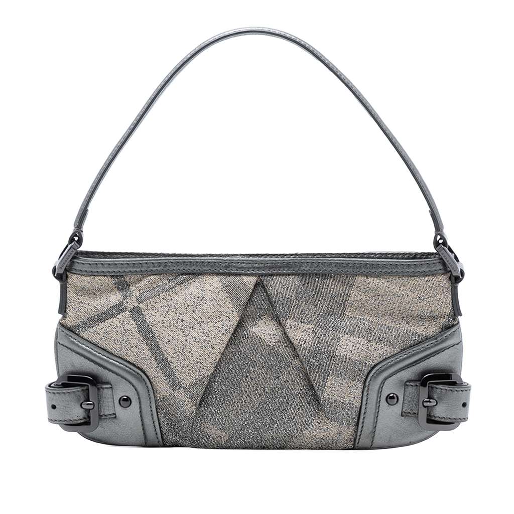 Burberry Shimmer Check Canvas Shoulder Bag Grey Medium Canva