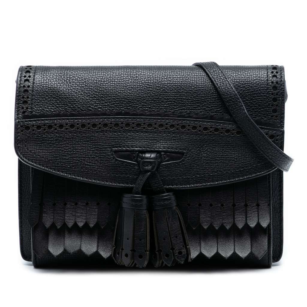 Burberry Small Grainy Calfskin Broguing Tassel Macken Crossb
