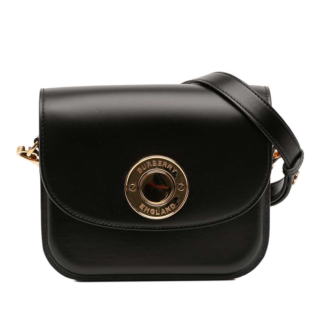 The Elizabeth crossbody bag features a leather body, an adjustable and detachable flat leather strap, a top flap with a push lock closure, and an interior slip pocket.